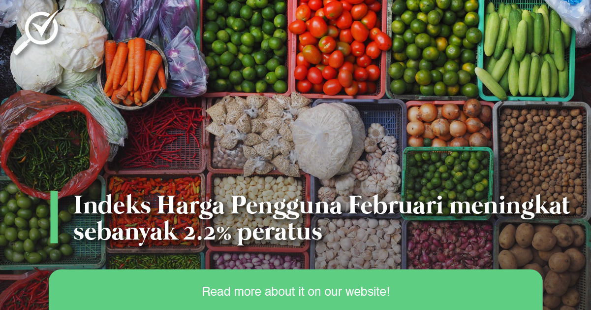 Indeks Harga Pengguna Februari meningkat sebanyak 2.2% peratus