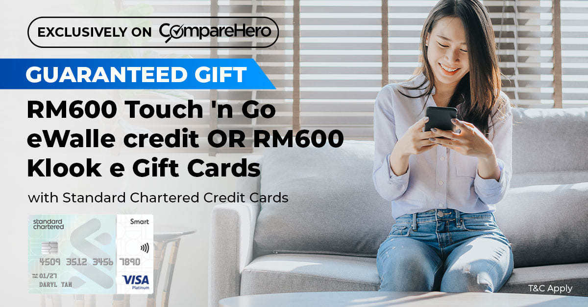 If you're looking for a reliable and secure banking partner, consider signing up for a Standard Chartered credit card through CompareHero. Stand a chance to win a GUARANTEED gift of RM600 Touch 'n Go eWallet Credit or RM600 Klook e-Gift Cards from now till 20 June 2023.